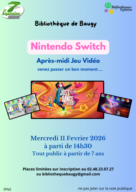 La bibliothèque de Baugy propose un après midi d'animation NINTENDO SWICH