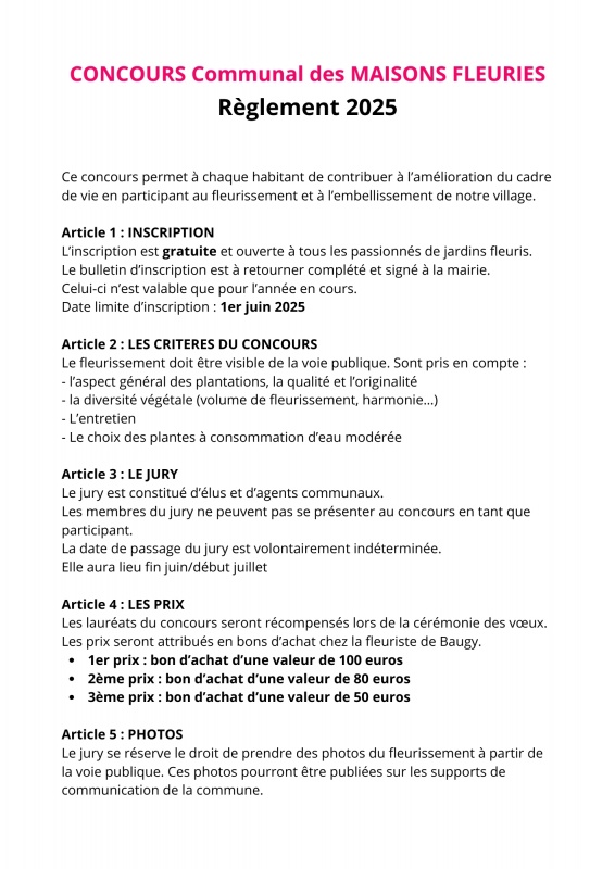 Participez à l’embellissement de notre village en inscrivant votre maison, balcon ou jardin visible depuis la rue au Concours Communal des Maisons Fleuries.