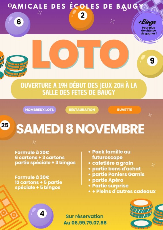 Un LOTO samedi 8 novembre à 20h ouverture des portes à 19h00